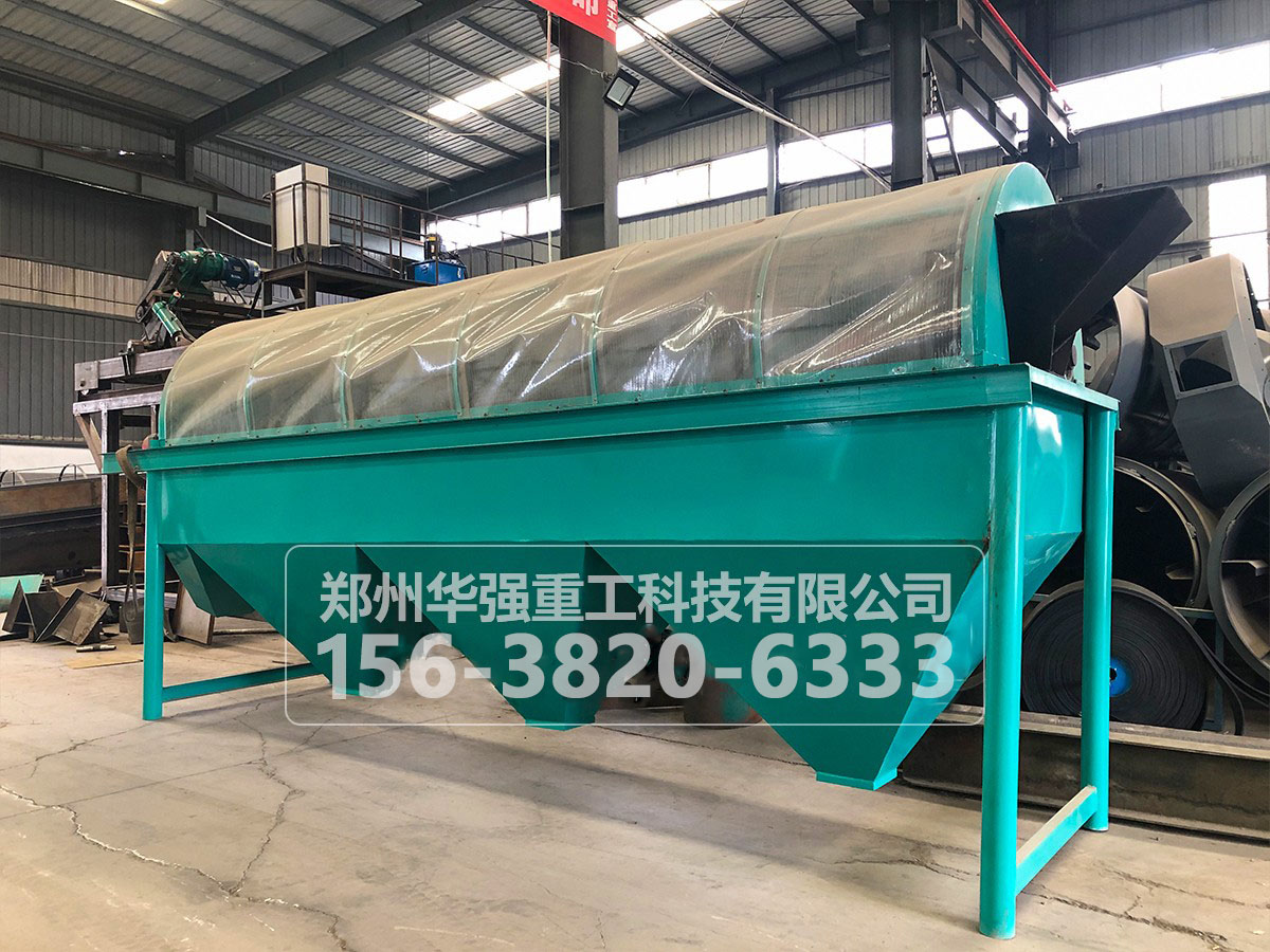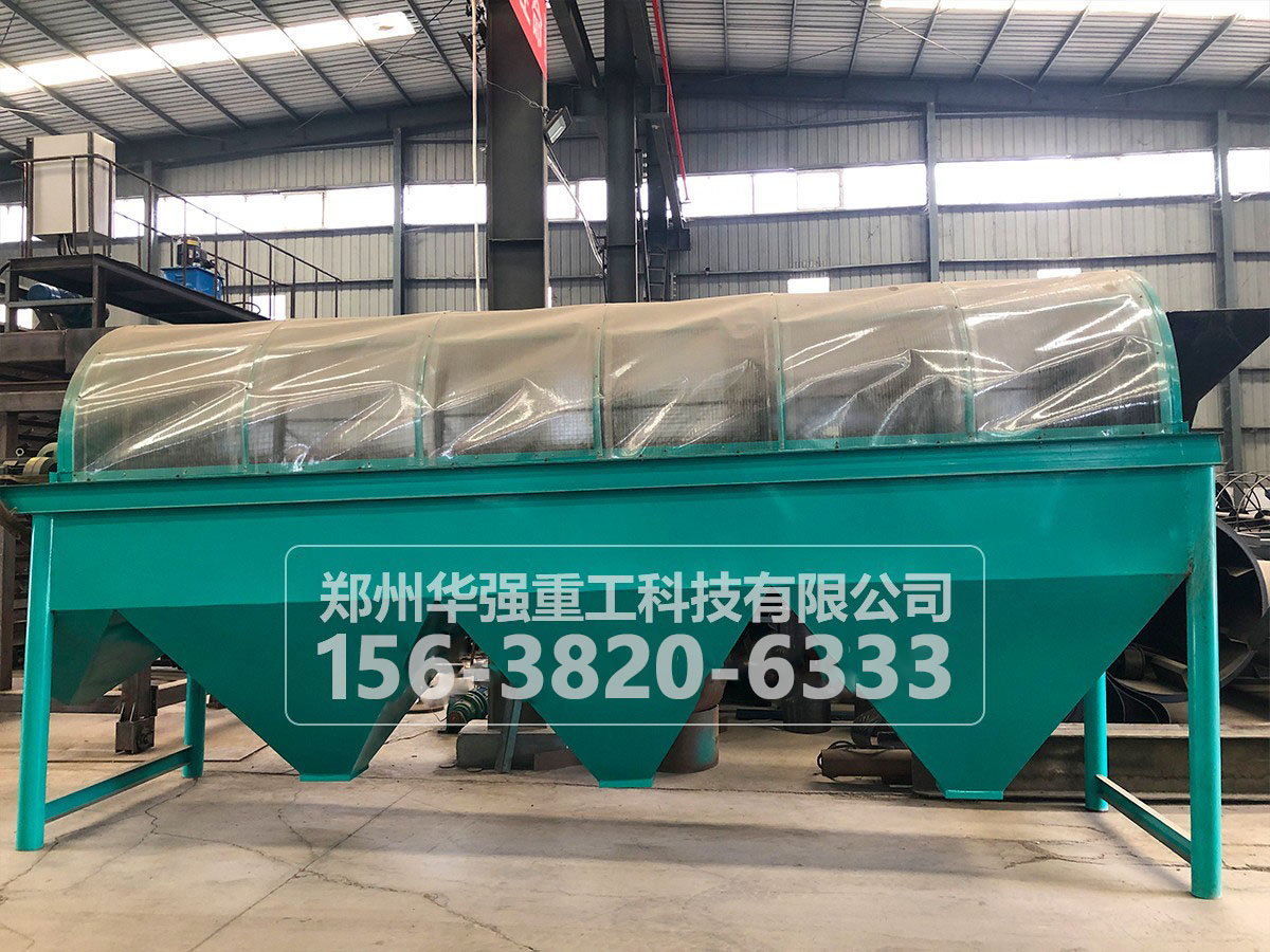 滾筒篩分機(jī)在使用過程中,運(yùn)轉(zhuǎn)緩慢均勻,沖擊振動(dòng)很小、工作平穩(wěn)、其安裝簡單,有時(shí)甚至不需要專門的基礎(chǔ)。可以直接放置于平整的地面或樓板上及料倉下。滾筒篩可設(shè)有梳型清篩機(jī)構(gòu),在篩分過程中可通過梳型清篩機(jī)構(gòu)與篩分筒的相對運(yùn)動(dòng),達(dá)到對篩體不間斷清理的效果,使篩分筒在整個(gè)工作過程中始終保持清潔、不粘、不堵、不影響篩分效果。根據(jù)不同分級要求,滾筒篩分級級數(shù)一般從細(xì)到粗為1-4節(jié),物料從細(xì)到粗分別從 節(jié)到 一節(jié)篩網(wǎng)篩出,大于 一節(jié)篩網(wǎng)孔的物料從出料口排出。滾筒篩的主體結(jié)構(gòu)是篩分筒,它是由若干個(gè)圓型狀篩網(wǎng)組成,整體與地平面成傾斜狀態(tài),外部被密封隔離罩所密封,以防止污染環(huán)境。